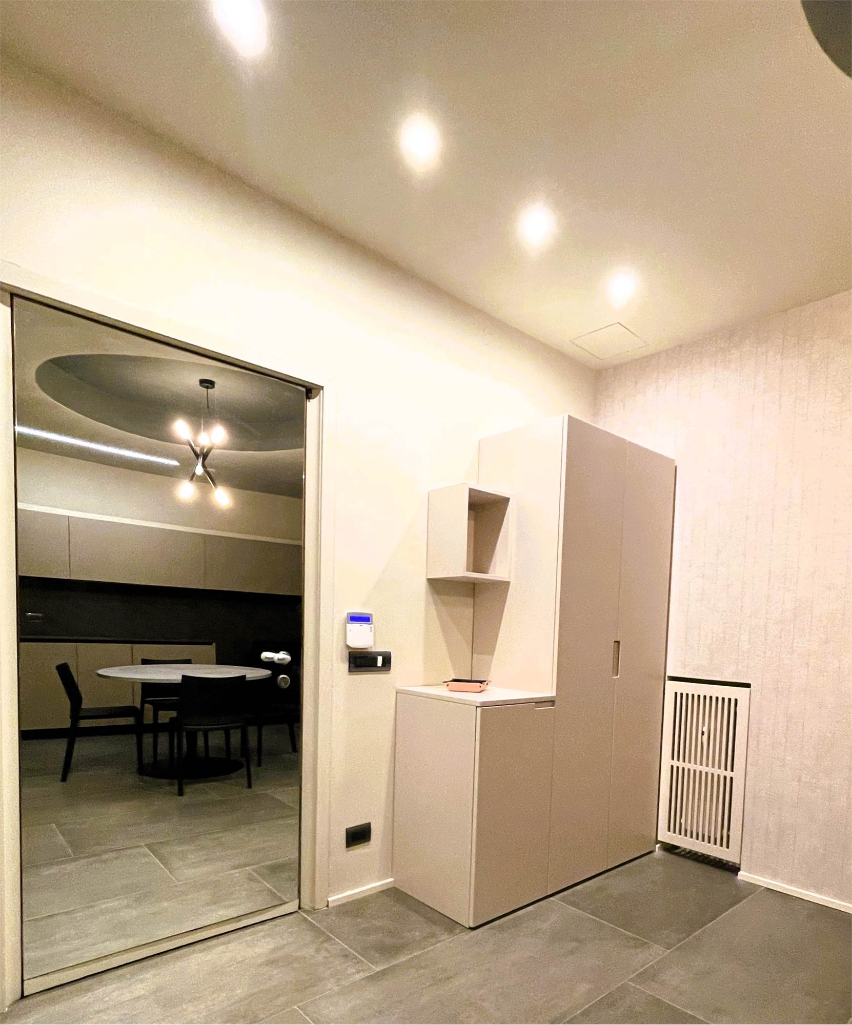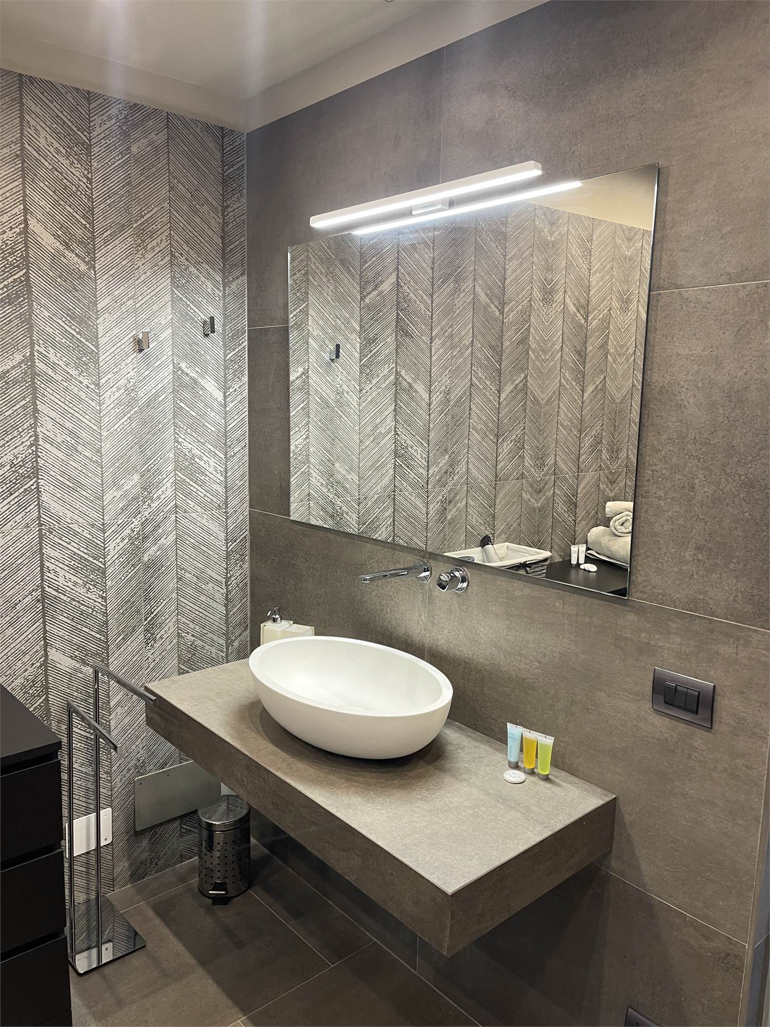 L'immobile, curato nei minimi dettagli, presenta una cucina a vista moderna e funzionale, ambienti accoglienti e dotazioni di alto livello come: doccia doppia in cristallo, impianto di climatizzazione, video citofono, impianto di allarme, servizio di portineria.